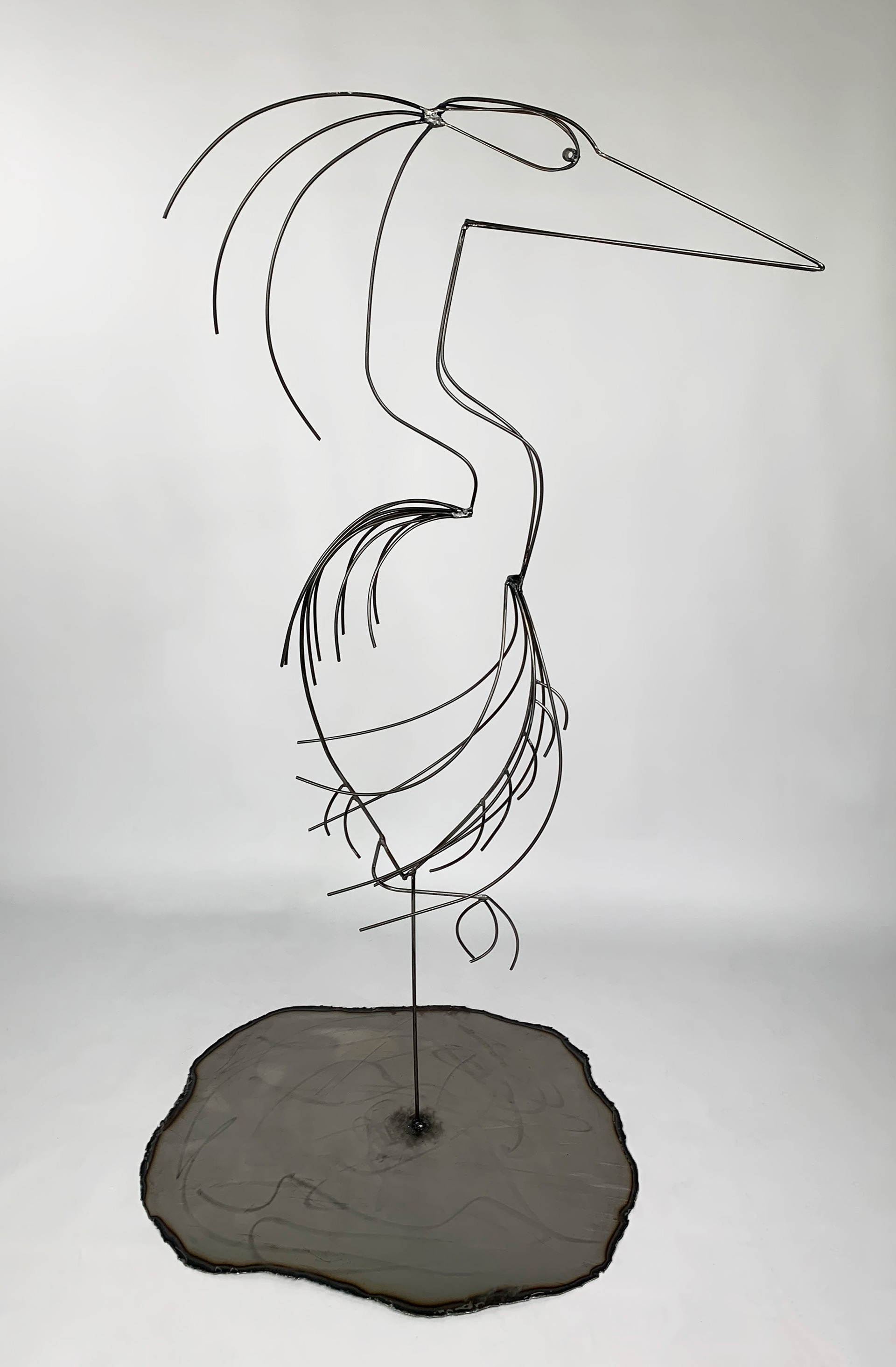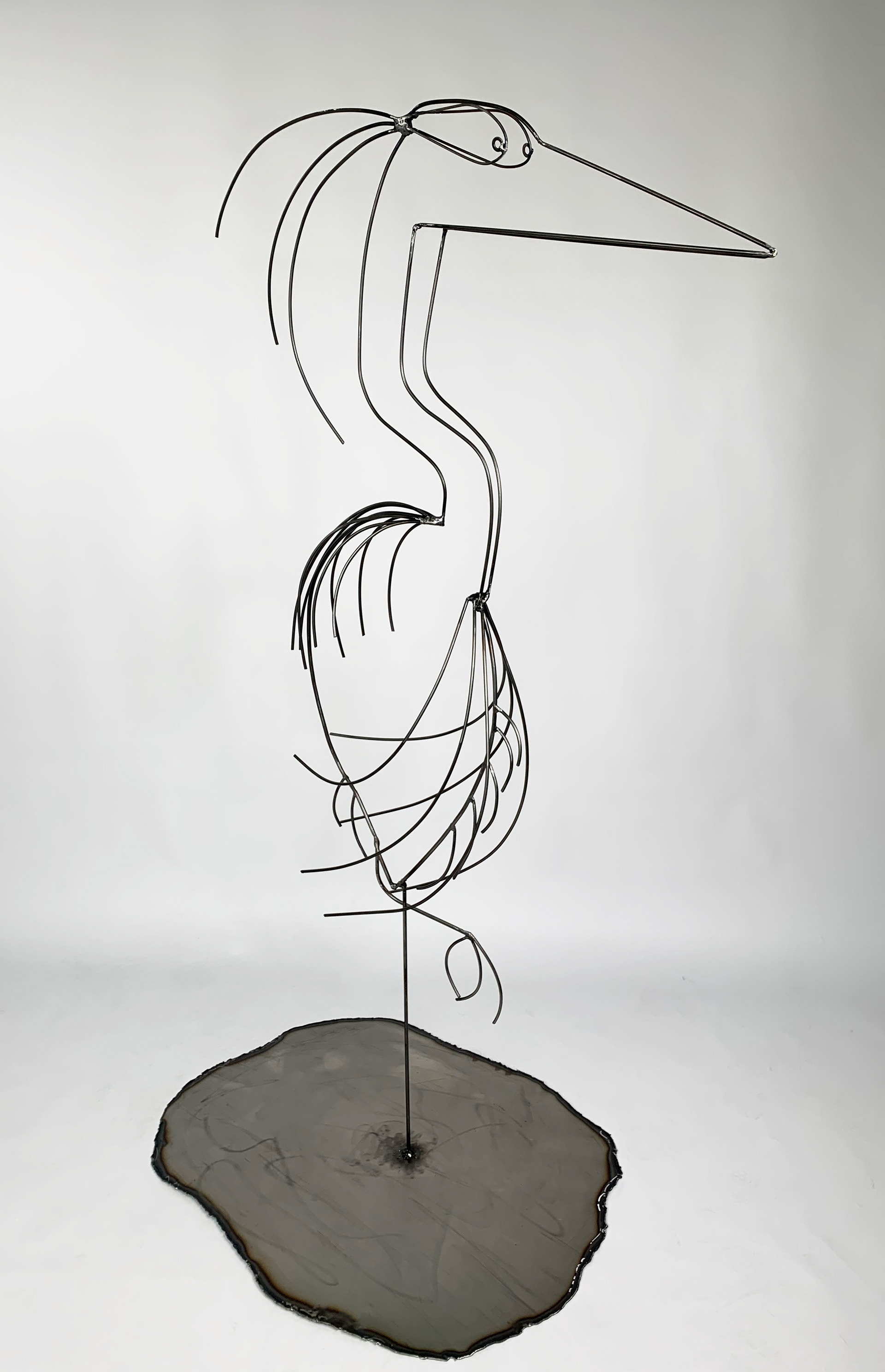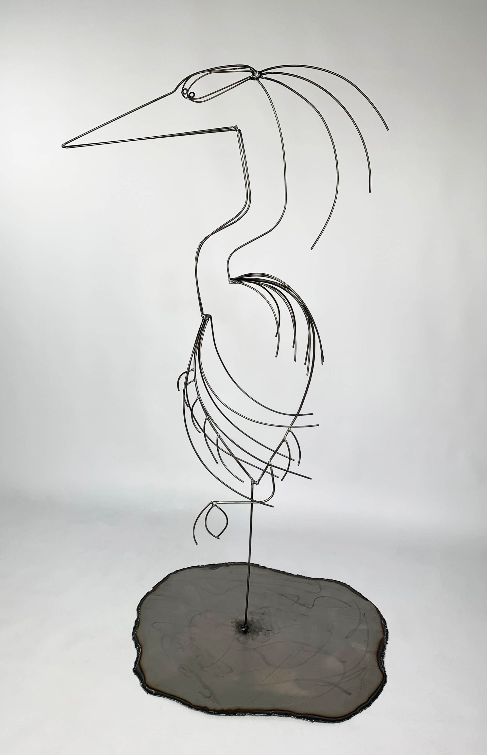 A great blue heron sculpture I gas and MIG welded from steel rods and sheet.