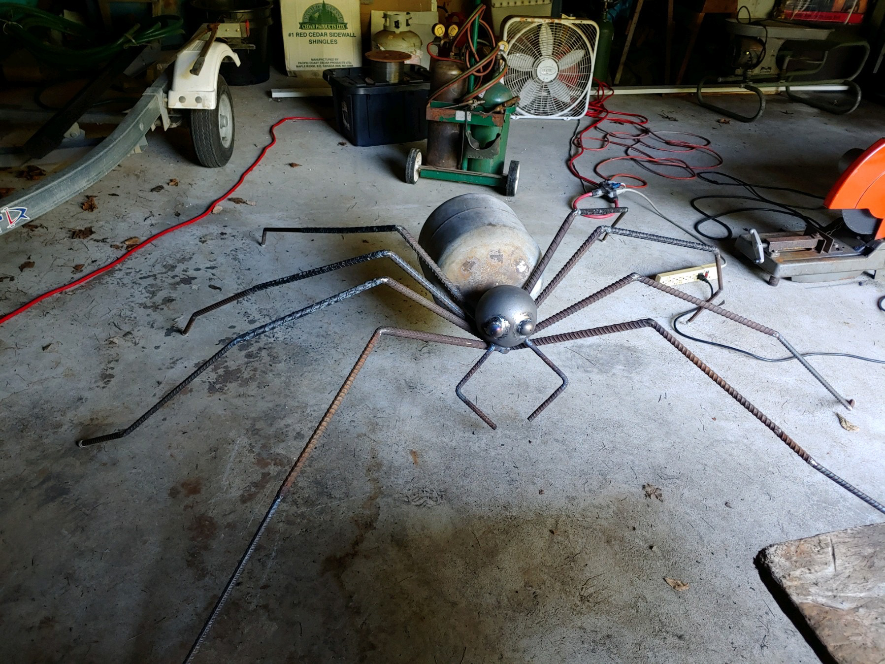 For the spider and bee bodies, we used old propane tanks. For the dragonfly, it’s an old fire extinguisher and a garden dibber.